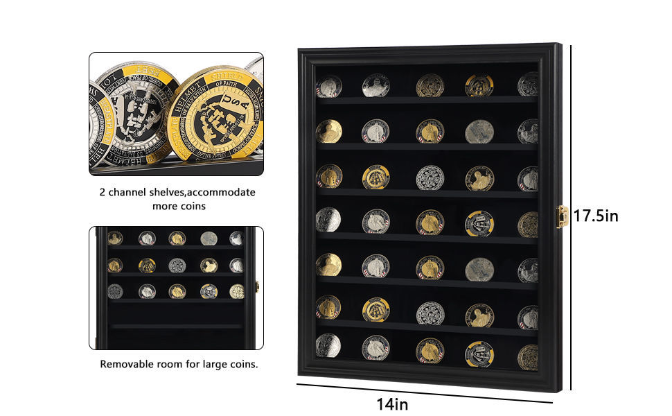 Coin Display Case Cabinet Black Lockable Wall Mount 7 Tier Coin Holder Rack
