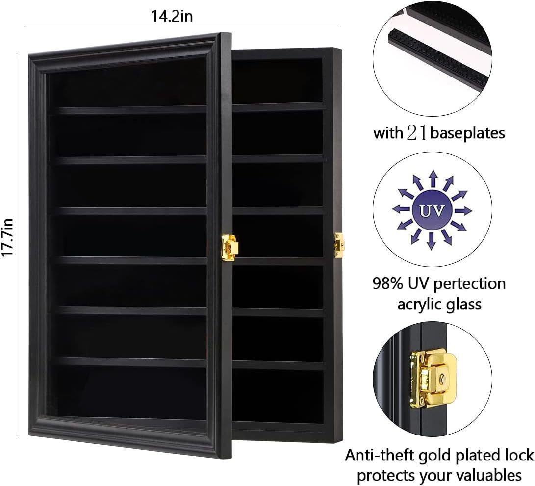 【THE BEST DISPLAY OF MINIATURES】This miniature figurine display cabinet is ready to hang and has 5 tiers to allow the figurines to stand up, it is made from high quality wood with a smooth wooden surface and comes with clear acrylic panels for easy viewing, each cabinet is protected from dust and damage.