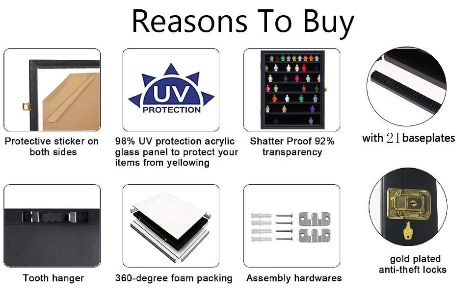 【EASY TO INSTALL】The block toy display box comes with all the necessary hardware for easy assembly and installation. The door of the box is of high quality and comes with a lock to keep your collection safe and secure.【STORAGE RACK】If you are a collector, don't miss it.You can display miniatures, action toys, vinyl figures, dolls, shells, crest beads, mini pop figures, dragon ball and more.