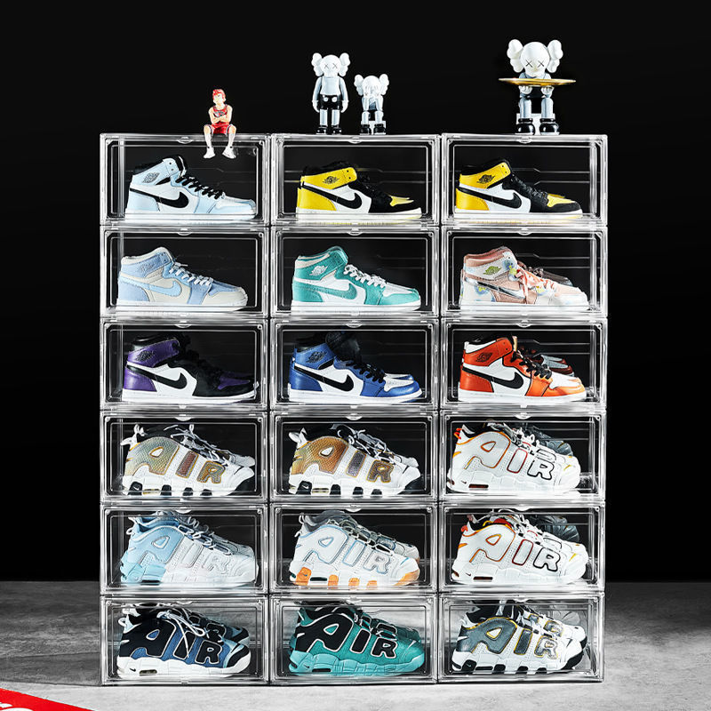 PROFESSIONAL GRADE Shoe Display Case - Our sneaker storage box is made of heavy duty material PET and acrylic .Each side of the box is made of hard piece.Each box measures20cm*36.5cm*27cm and can fit up to US size 15