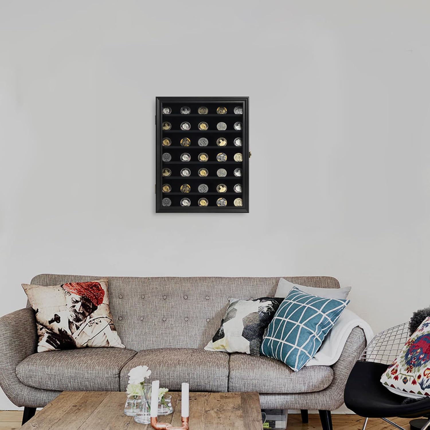 Coin Display Case Cabinet Black Lockable Wall Mount 7 Tier Coin Holder Rack