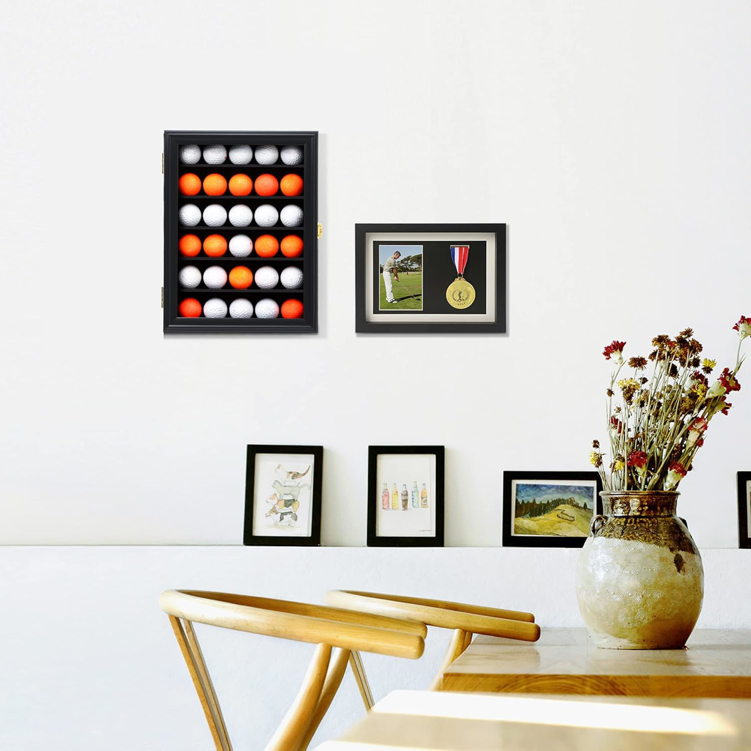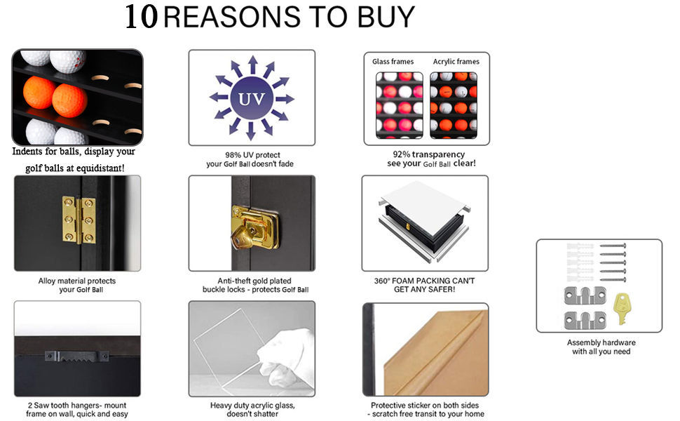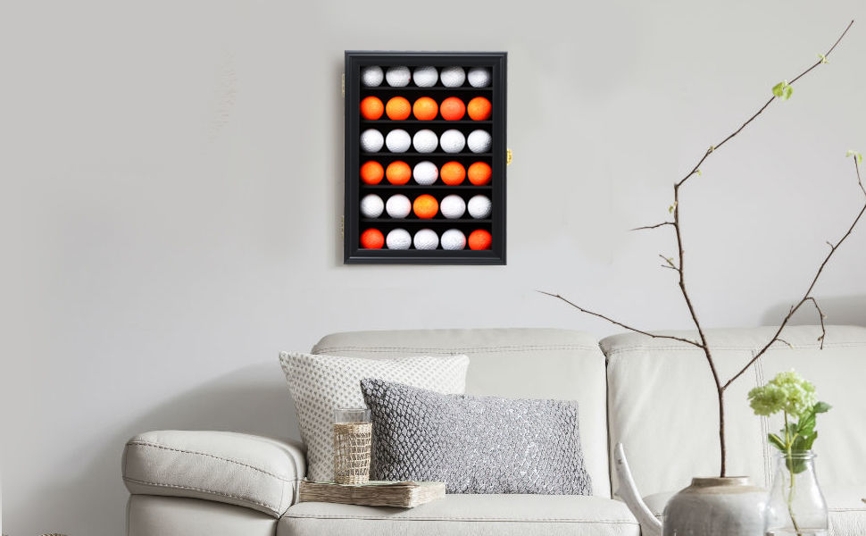 DescriptionDisplay your golf ball collection in style with this sleek black display case.Featuring a lockable clear door and durable wooden frame, this cabinet keeps your collection safe, organised, and dust-free. Perfect for collectors, golf lovers, or as a unique gift.
