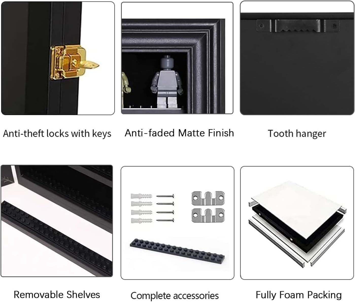 【EASY TO INSTALL】The block toy display box comes with all the necessary hardware for easy assembly and installation. The door of the box is of high quality and comes with a lock to keep your collection safe and secure.【STORAGE RACK】If you are a collector, don't miss it.You can display miniatures, action toys, vinyl figures, dolls, shells, crest beads, mini pop figures, dragon ball and more.